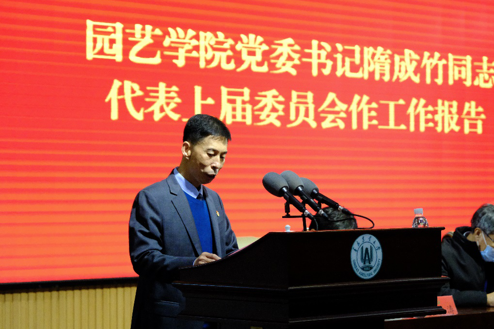 党员大会在庄严的国歌声中拉开帷幕。隋成竹同志代表学院上届委员会作了题为《坚持立德树人 强化学科引领 服务国家战略 奋力开创高质量发展新局面》的工作报告,回顾了学院五年来取得的主要成绩,总结了主要经验,分析了学院发展存在的问题,明确了今后五年发展目标和主要任务。报告指出:九游体育官方网站在校党委、校行政正确领导下,深入贯彻落实新时代中国特色社会主义思想,强化党组织和党员队伍建设,积极进取,奋力开拓,实现了高质量发展阶段性突破。成功获批园艺学博士点,实现办学层次提升;加强学科团队优化整合,科研工作全面提升;坚持引育并举,优化师资队伍;加强专业内涵,深化教学改革;对接黄河重大国家战略,积极开展社会服务;党建带团建,育人质量不断提升;加强对外交流,合作办学成效显著。站在新起点,面向新征程,学院要坚持以习近平新时代中国特色社会主义思想为指导,深入学习贯彻党的二十大精神,在校党委、校行政的坚强领导下,以高质量党建引领高质量发展,加强发展宏观思维和顶层设计,扎实落实十四五发展规划,强化学科建设龙头地位,突出教学中心地位,凸显教师队伍主体地位,瞄准人才培养核心目标,聚焦立德树人根本任务,实施党建引领、人才强院、学科提升、专业建设、科研提升、学生品牌创建、文化引领等系列工程,推动办学水平持续提升。