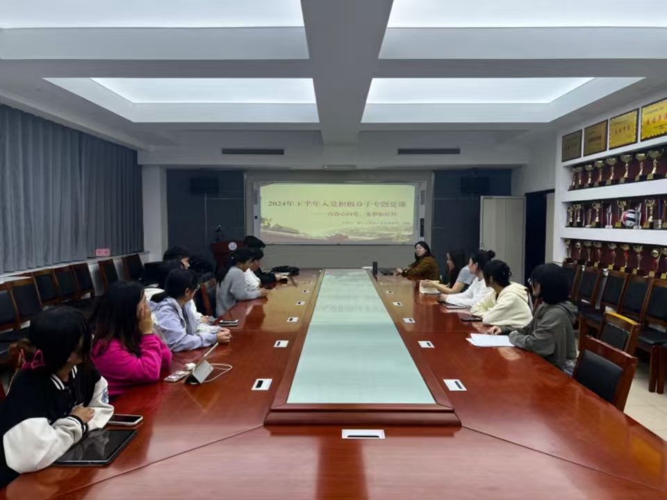10月18日晚,九游体育官方网站第六(学生)党支部书记刘园在生物楼N306会议室,以“青春心向党,逐梦新征程”为题为入党积极分子讲授专题党课。刘园围绕“端正入党动机,明确入党目的”和“如何发挥党员先锋模范作用”两部分内容,阐述了如何用实际行动争取早日入党。最后,她从四个方面明确了大学生党员如何发挥先锋模范作用:第一要提高政治觉悟,增强党性修养,不断加强政治理论学习,提升思想素质;第二要刻苦学习,勤于钻研,营造良好学风,和同学们共同进步;第三要积极参加社会实践,投身志愿服务,用专业所学回馈社会,服务“三农”建设。