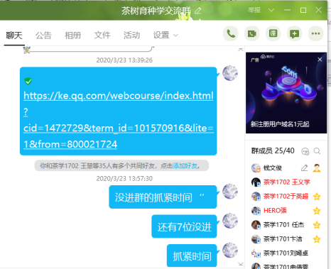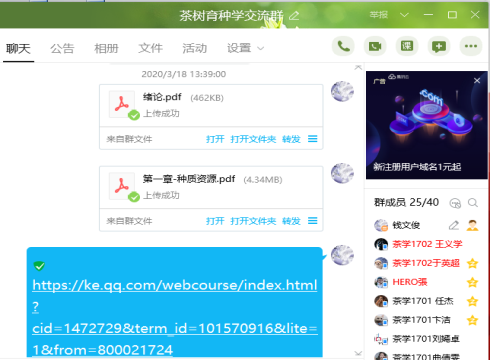 突如其来的新冠肺炎疫情虽阻挡了莘莘学子返校的脚步,却阻挡不了广大学子学习的热情,更阻挡不了广大教师教书育人的初心。本着“停课不停学,停课不停教”的号召,全国各高校、高中、中小学纷纷开展了网络线上教学工作,打响了线上教学攻坚战。正是这种教学模式的变化,为全国全面深化教学改革,提高教学质量,提升学生知识水平打下了坚实的基础。《茶树育种学》作为一门理论知识结构极强的专业课,一直以来都是通过课堂讲授PPT,并结合参考教材的形式进行授课的,而这种授课模式在一定程度上特别容易造成课堂内容枯燥,学生学习热情不高的局面。我个人感觉,此次教学模式的变化很大程度上解决了上述问题,学生学习的效率和热情都比‘face to face’即课堂教学要高。因此,本人正好借此契机,不断摸索该课程最佳的授课方式,以提升教学能力,提高学生学习水平。现将近期的线上教学工作进行简单总结。