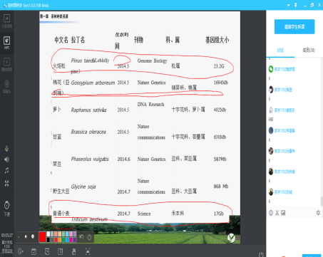 本课程主要以PPT展示加同声直播为主(图3-4),在授课中对一些重难点通过在PPT上标注或是在讨论区介绍的形式向大家讲解。同时也会在线上随机提问,通过讨论区让大家写出答案,供大家一起讨论(图5),一方面加深大家的记忆,另一方面是对学生学习过程进行监督。另外,我也会穿插一些视频或生活中的素材来形象化一些抽象的知识点。