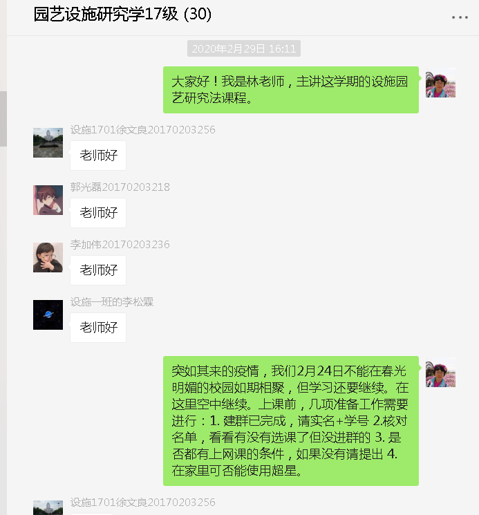学生未动,老师先行。选择合适的授课平台是保证授课质量的前提。经过反复比较不同平台的特点,林老师选择了超星网络教学平台进行线上授课。为了便于答疑和互动,开课前她专门建立了本门课程学习的微信群,通过微信群详细指导学生超星教学平台使用方法,发送课程安排表、时间安排表及学习注意事项,让学生按照正常课程节奏进入在家如在校的学习模式。