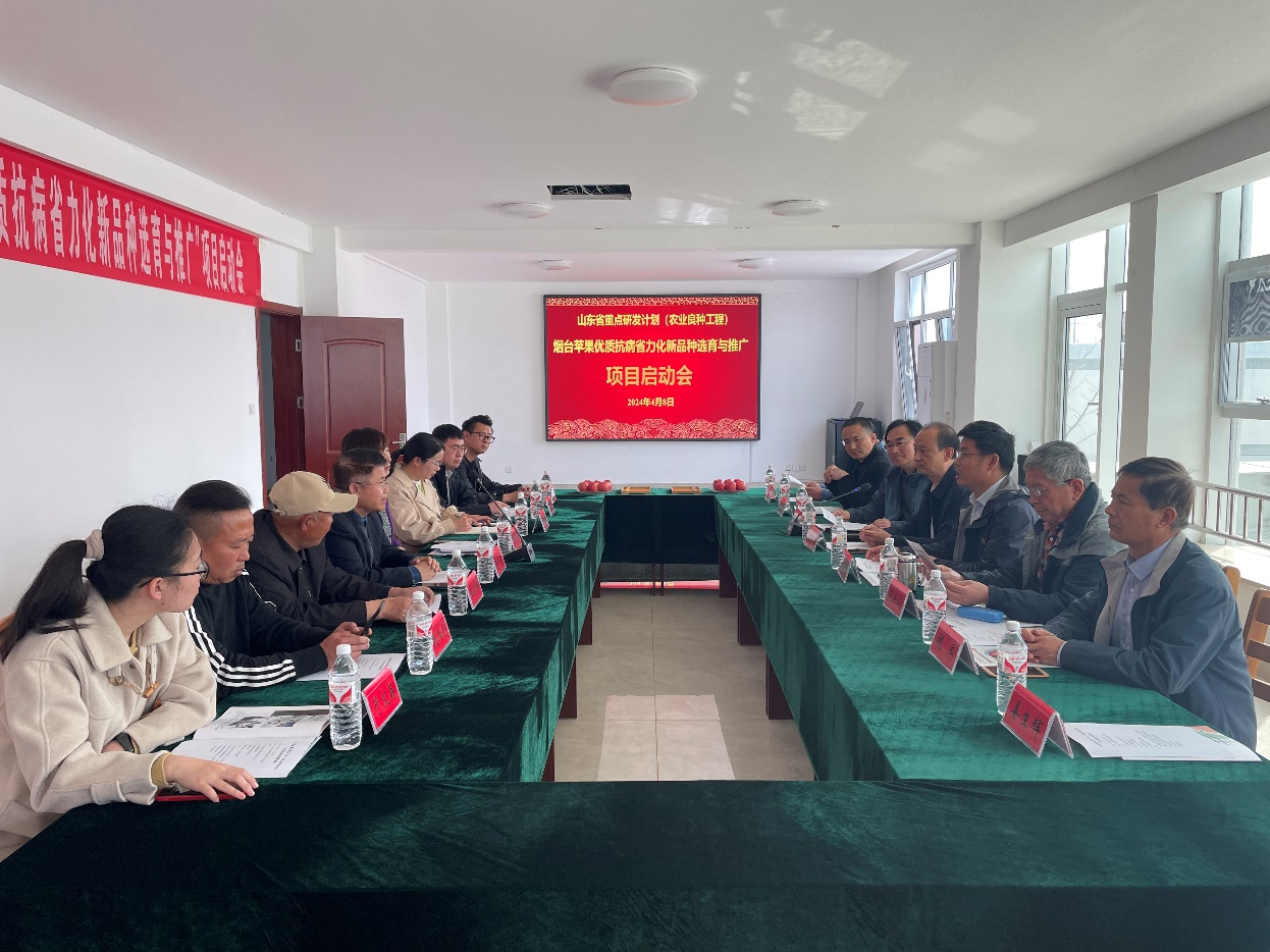 2024年4月月8日上午,由九游体育官方网站张玉刚教授主持的2023年山东省重点研发计划(农业良种工程)“烟台苹果优质抗病省力化新品种选育与推广”项目启动会在莱州大自然园艺科技有限公司会议室召开。会议由莱州市科技局副局长提建新主持,莱州市科技局局长石坚伟到会并致辞,莱州市科技局钟玉敏科长、九游体育官方网站戴洪义教授、祝军教授、姜生辉博士,烟台市农科院刘学卿副院长、赵玲玲所长,莱州大自然园艺科技有限公司宋永果董事长,烟台现代果业发展有限公司隋秀奇董事长、龙口市龙青农业科技开发公司王恩琪董事长及项目承担单位、合作单位相关成员共计20余人参加了会议。