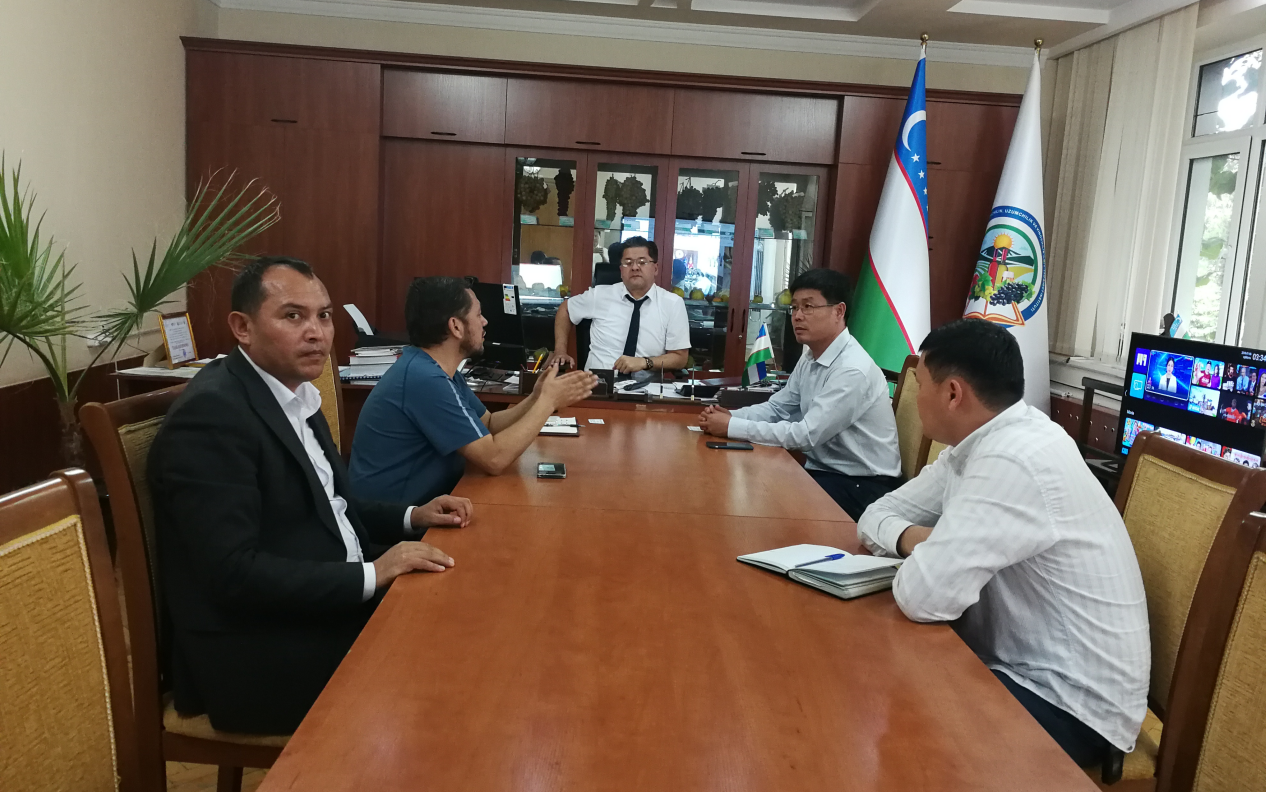 在乌兹别克斯坦农科院Makhmud Mirzaev院士园艺、葡萄栽培和酿酒科学研究所,会见所长Ulugbek Abduganiev 研究员,与副所长福齐尔·博伊吉戈托夫(Fozil Boyjigotov)研究员、实验室主任阿卜杜拉赫曼·阿利亚罗夫(Abdulrahman Aliarov)研究员、阿卜杜拉娃·希洛拉(Abdullaeva Hilola)研究员和研究室科研人员座谈,并参观了实验室及组培室。