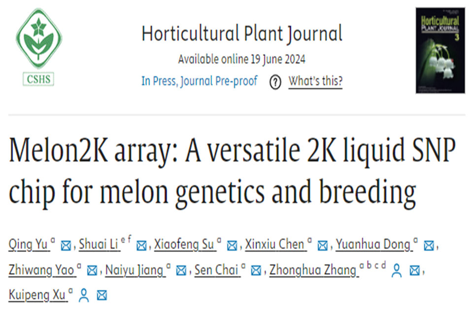 2024年6月19日,九游体育官方网站张忠华/徐奎鹏团队在国际期刊Horticultural Plant Journal(JCR:Q1,IF = 5.7)上在线发表了题为 Melon2K array: A versatile 2K liquid SNP chip for melon genetics and breeding的研究论文,该研究基于团队前期建立的甜瓜变异组数据库,结合博瑞迪生物的GBTS技术体系设计开发了一款甜瓜2K液相芯片,可实现高通量、低成本的大规模基因分型,大大提高了甜瓜品种鉴定的效率和准确性,显著缩短了回交育种周期,为甜瓜的遗传育种工作提供了高效基因型鉴定技术支撑。