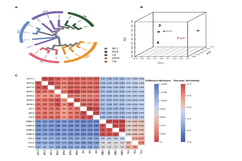 利用Melon2K液相芯片对5个甜瓜商品种的17份样本进行品种鉴定,共检测超过1500个多态性位点,可清晰地构建出不同品种间的系统发生关系,并且准确评估不同品种间及同一品种不同来源的样本间的遗传背景差异,提高了品种鉴定的效率和准确性。