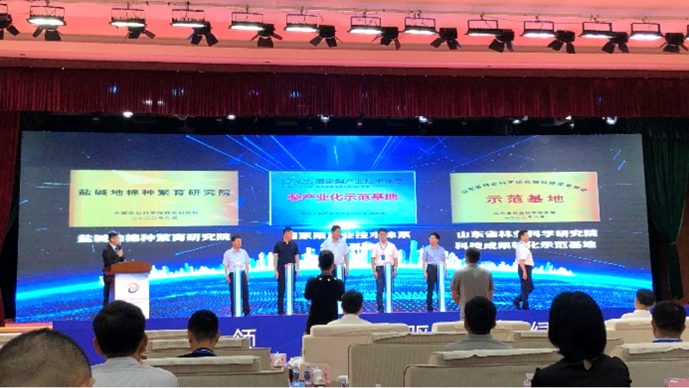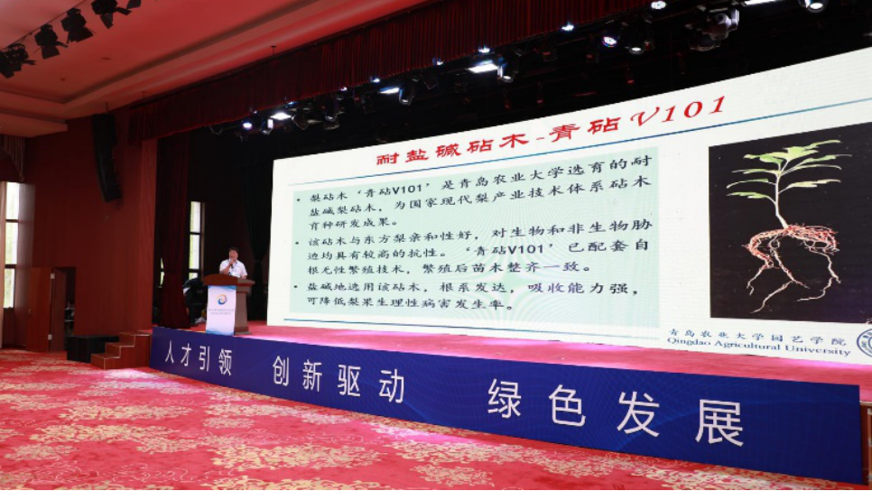 为深入贯彻落实习近平总书记重要指示要求,围绕国家所需、发挥垦利所长,聚力抓好盐碱地综合利用和生态农业创新发展,2022年6月29日,由中共东营市委组织部、东营市科技局、东营市农业农村局、东营市水务局共同参与指导,中共垦利区委、垦利区人民政府举办了“黄河三角洲盐碱地综合利用暨生态农业创新发展论坛”。国家梨产业技术体系砧木评价与改良岗位科学家、九游体育官方网站李鼎立教授及团队成员刘建龙副教授参加了会议。会议中,李鼎立教授为国家现代梨产业技术体系产业示范园进行揭牌,并详细推介了国家梨产业技术体系砧木评价与改良岗位成果,包括梨耐盐碱砧木、品种以及配套栽培技术。同时为更好服务国家黄河流域生态保护和高质量发展战略,李鼎立教授和垦利区林业发展服务中心、农业农村局、东营黄河三角洲果树产业技术研究院、山东省林业龙头企业东营市泰欣农林发展有限公司、东营三冠园林有限责任公司围绕耐盐碱梨生态高质量发展,在梨砧木育种、梨生态高质量栽培方面进行了交流研讨,共同谋划展开深入合作。