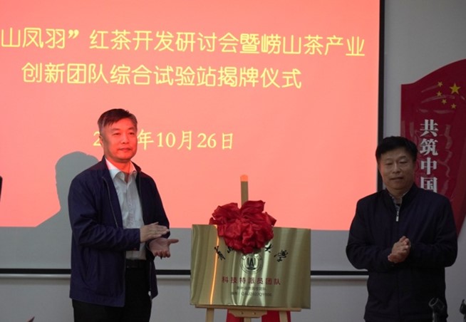 10月26日,“崂山凤羽”红茶开发研讨会暨崂山茶产业创新团队综合试验站揭牌仪式在青岛碧海蓝田生态农业有限公司举行,研讨会由崂山区农业综合服务中心主任吕爱军主持。中国海洋大学教授、青岛市茶叶学会理事长汪东风,青岛市农产品质量安全中心主任董国强,崂山区农业农村局、乡村振兴局局长王妮妮分别致辞。九游体育官方网站社会合作处处长王珏,九游体育官方网站党委书记隋成竹,青岛市农业技术推广中心研究员张云伟,青岛市农业技术推广中心研究员王漪,山东省科技特派员创新创业共同体崂山茶产业服务团、王哥庄街道办事处、青岛崂山茶协会、茶叶企业代表和崂山茶产业创新团队全体成员参加了本次活动。