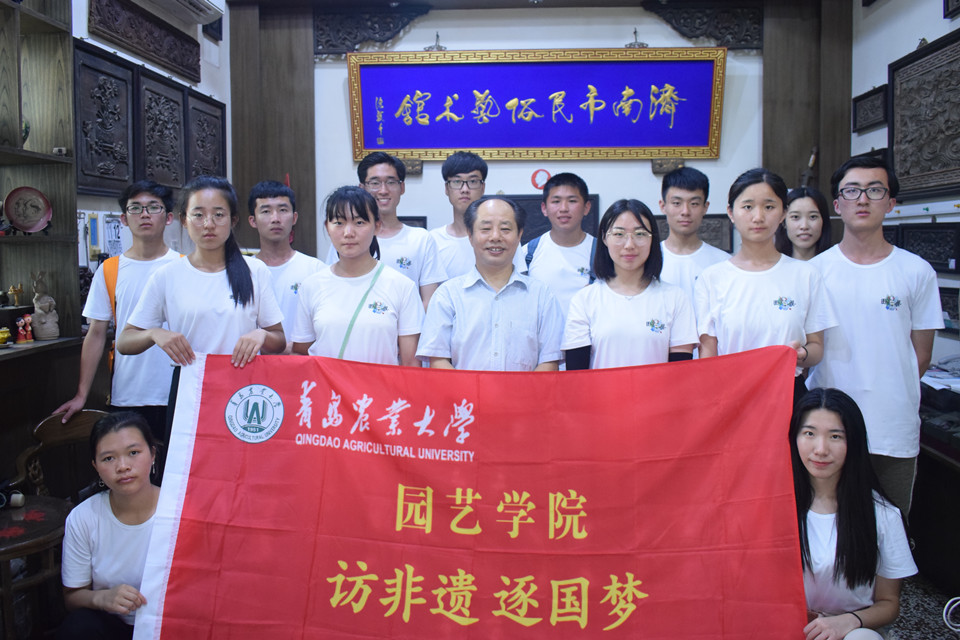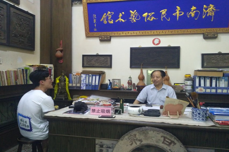 为进一步加强对民俗文化的了解,深入研究非物质文化遗产发展状况,拜访完高桂英老人后,实践团又来到了济南市民俗艺术馆。济南市民俗艺术馆,是于2002年成立的一所公益文化事业单位,承担全市的民间文化的抢救与保护工作;研究齐鲁民俗文化的历史与现状,开展民俗文化艺术研究;举办民俗文化艺术收藏、展览等工作。馆长刘学斌于2004年成立了民俗艺术学校,让众多民间大师有了“家”,培养了众多杰出民俗艺术专业人才,促进了齐鲁民俗文化及旅游事业的交流与发展。