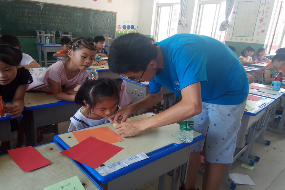 礼仪课上,借着教孩子们自我介绍的机会,让他们上台展示自己的兴趣爱好;朗诵课上,借着帮孩子们鉴赏古典诗歌的机会,为他们描绘了祖国山河的锦绣风光;书法课上,借着教孩子们握笔运笔的机会,向他们树立了正直清廉诚实守信的品德意识;茶艺课上,借着教他们品味茶文化的机会,向他们传授了淡泊宁静、端庄沉稳的思维素养;折纸课上,队员抓住孩子活泼的天性彻底释放了他们的想象力,给孩子充足的时间去抓住自己的梦想……