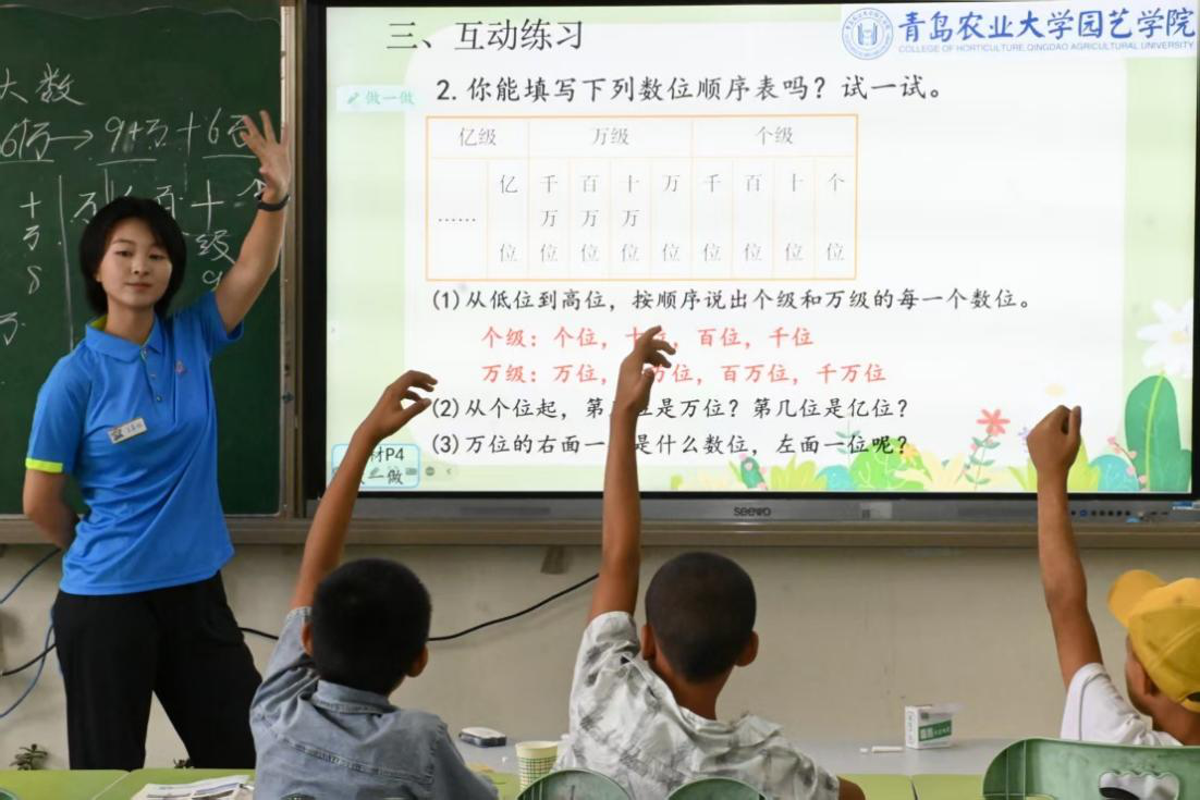 团队立足教育教学主阵地,在确保语数英主干课程教学质量的同时,精心打造以中华优秀传统文化、现代农业科技特色和美育教育为主要内容的特色课程体系,着力提升学生综合素质,激发内生学习动力。通过组织开展教学试讲活动,严格规范教学流程,强化团队协作,持续优化教学方案。在首日教学实践中,针对部分学生基础薄弱、解题方法掌握不系统等实际情况,服务团队深入调研学情,科学研判教学重点难点,及时增设普通话正音矫正、汉字笔顺规范示范、数学专题强化训练及英语字母音标专项巩固等教学模块。值得肯定的是,经过针对性教学调整后,学生展现出良好的学习领悟力,通过适当点拨就能举一反三,课堂参与度显著提升,教学成效持续向好。