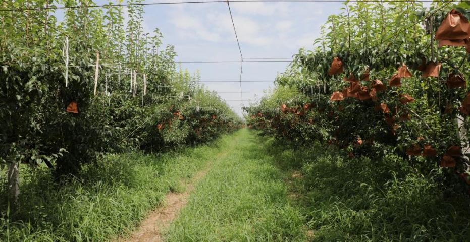 图为全国劳模李文燕为实践团讲解果园管理技术