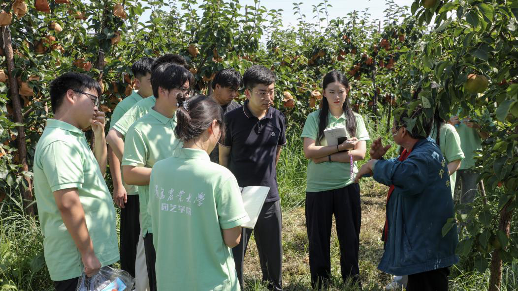 “大爷,这是我们整理的盐碱地果树病虫害防治手册,您看这几项要点特别实用。”实践团结合前期调研数据,深入田间地头、农户家中,开展了宣讲推广。针对农户关心的土壤盐碱化治理、耐盐碱作物栽培等问题提供技术指导,用通俗易懂的语言讲解了“大食物观”理念,累计服务农户100余人。
