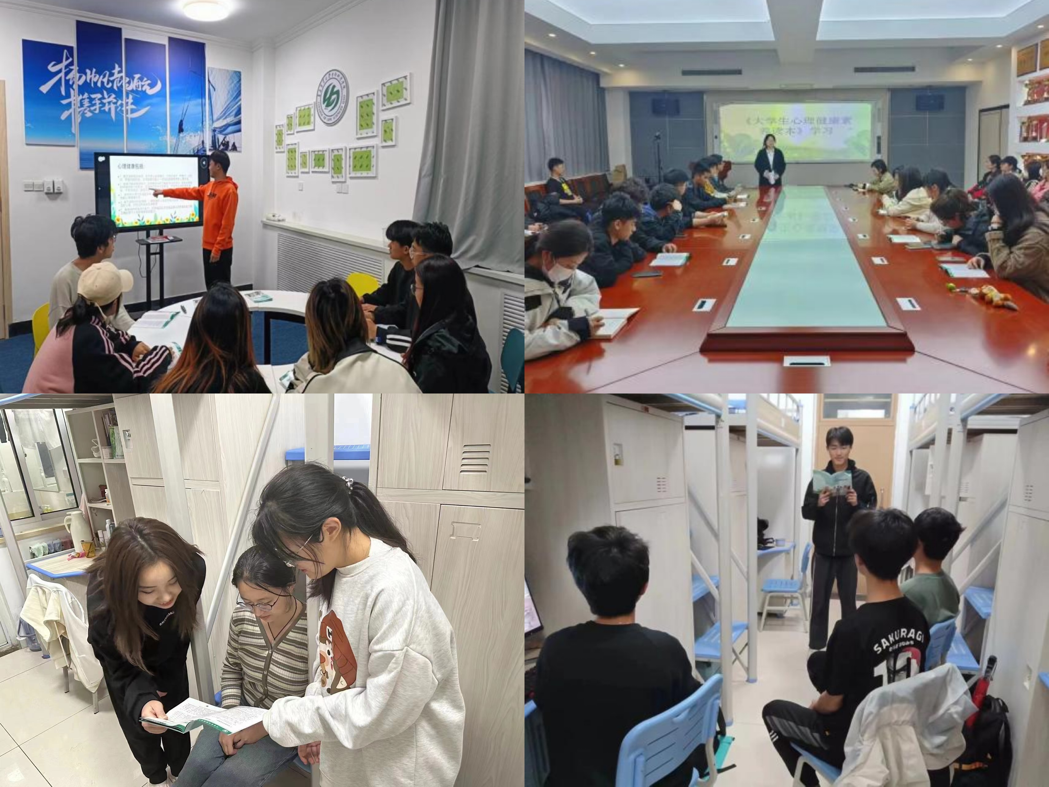 为普及心理健康知识,突出社区心理文化育人导向,引导学生树立科学的心理健康理念,九游体育官方网站于4月23日在城阳校区依托“一站式”学生社区平台,组织开展《大学生心理健康素养读本》阅读分享会,进一步加强和改进大学生心理健康教育,营造浓厚的社区心理育人氛围,平度校区组织各宿舍开展常态化学习。活动由2021辅导员刘园主持,2022级班长、心理委员参加学习。