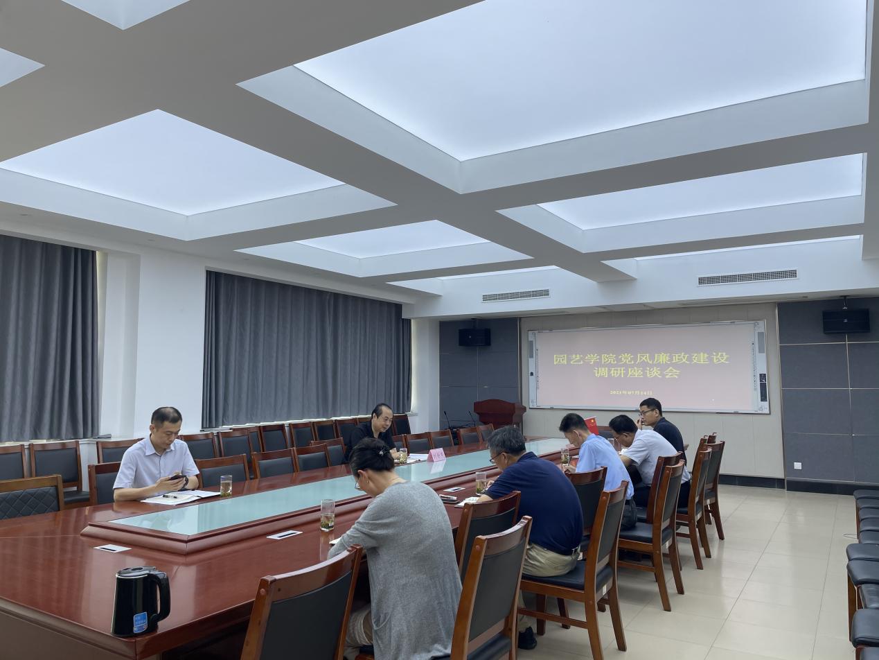 7月14日,九游体育官方网站校长刘新民到园艺学院进行调研,听取了学院党风廉政建设工作情况汇报,对学院党风廉政建设工作进行指导。学院党政领导班子成员参加会议。