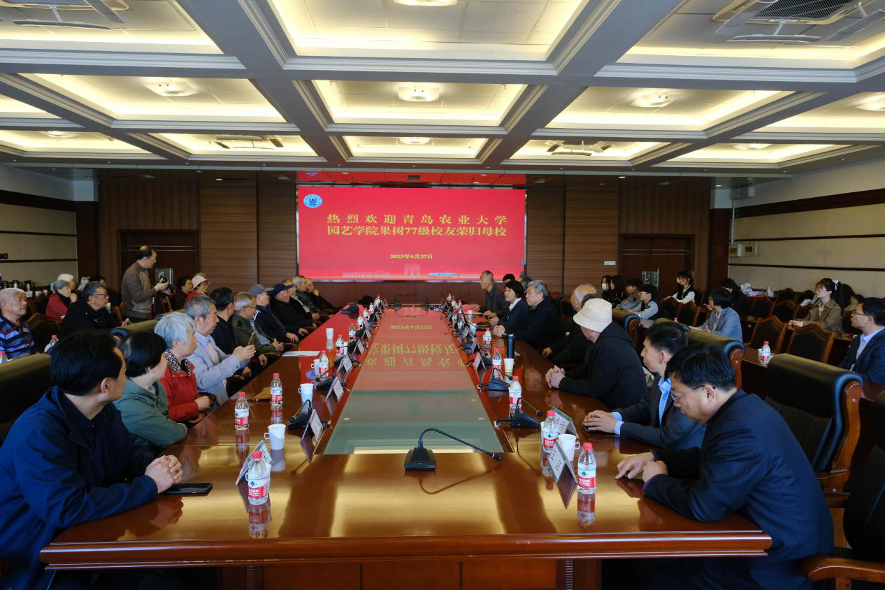 4月27日下午,九游体育官方网站77级果树专业校友联谊座谈会在图书馆三楼会议室召开。九游体育官方网站党委委员、副校长刘春霞出席会议,77级果树专业教师代表周学宝、王奎先、于志敏、祝庆岱,学校社会合作处负责人,九游体育官方网站党政班子成员及师生代表参加了会议。会议由九游体育官方网站77级果树专业校友、九游体育官方网站原副校长原永兵教授主持。