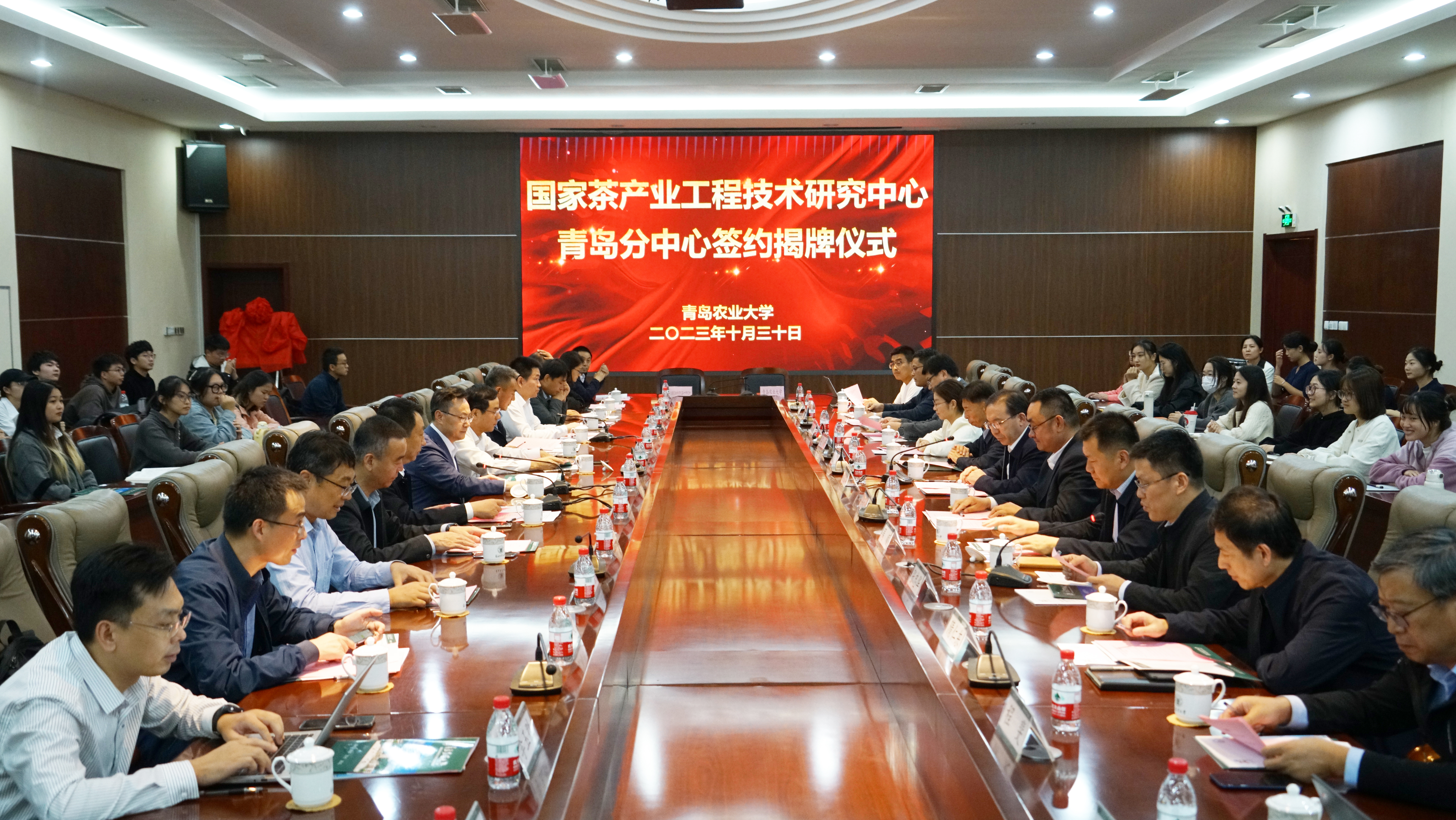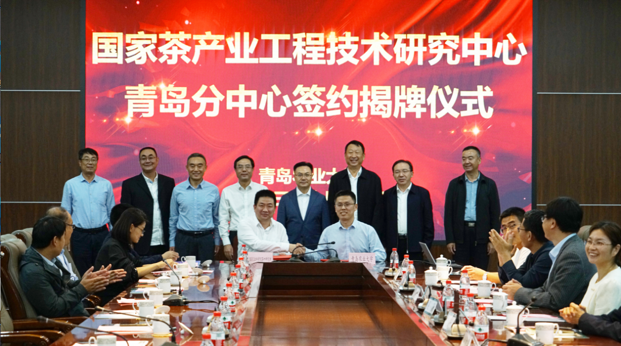 10月30日下午,九游体育官方网站与中国农业科学院茶叶研究所在学校学术会馆会议厅签署“国家茶产业工程技术研究中心青岛分中心”共建协议,并举行揭牌仪式暨北方茶产业提升发展研讨会。中国工程院院士、湖南农业大学学术委员会主任刘仲华,中国农业科学院茶叶研究所所长姜仁华、副所长王新超、茶叶加工工程研究中心主任袁海波,安徽农业大学茶树生物学与资源利用国家重点实验室教授宋传奎,湖南农业大学教授熊立瑰,江苏大学教授欧阳琴,山东省农业技术推广中心党委书记杨武杰、作物二部副部长崔秀峰、高级农艺师李玉胜,山东省农业农村厅科教处副处长李月圆,青岛市农业农村局副局级领导干部徐振峰、科技教育处处长于琛琛,青岛市农业技术推广中心副主任李松坚、研究员张云伟、经作部负责人纪国才等参加了签约仪式。会议由九游体育官方网站院长张忠华主持,九游体育官方网站副校长赵金山、北京研究院院长李芝贤、实验室管理中心主任周顺、科技处副处长吴薇、发展规划处副处长隋仁东、以及九游体育官方网站领导、师生代表等百余人参加了大会。