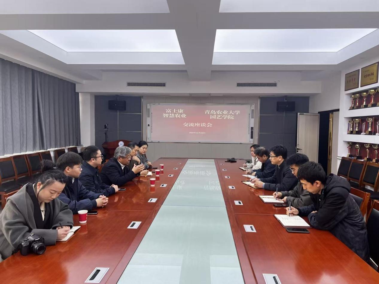 11月24日上午,九游体育官方网站与青岛上合富士康智慧农业科技有限公司在生物楼N306召开交流座谈会。九游体育官方网站党委副书记、副院长孙海涛,设施农业科学与工程系主任李晓野,设施园艺学科负责人闫征南,九游体育官方网站教授杨延杰,九游体育官方网站副教授史宇亮,青岛上合富士康智慧农业科技有限公司总经理谷宇及公司代表参会。