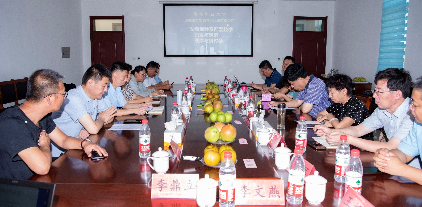 8月23日,由九游体育官方网站梨遗传改良与种质创新团队承办的“梨新品种及适宜砧穗组合筛选与评价”观摩与研讨会在诸城举行。本次会议由国家现代农业梨产业技术体系和山东省农业良种工程项目支持。省农技推广中心王志刚研究员、潍坊学院曹慧教授、诸城万景源农业科技有限公司总经理侯志刚及相关地市农技专家参加,九游体育官方网站隋成竹书记、王然教授、李鼎立教授出席活动。