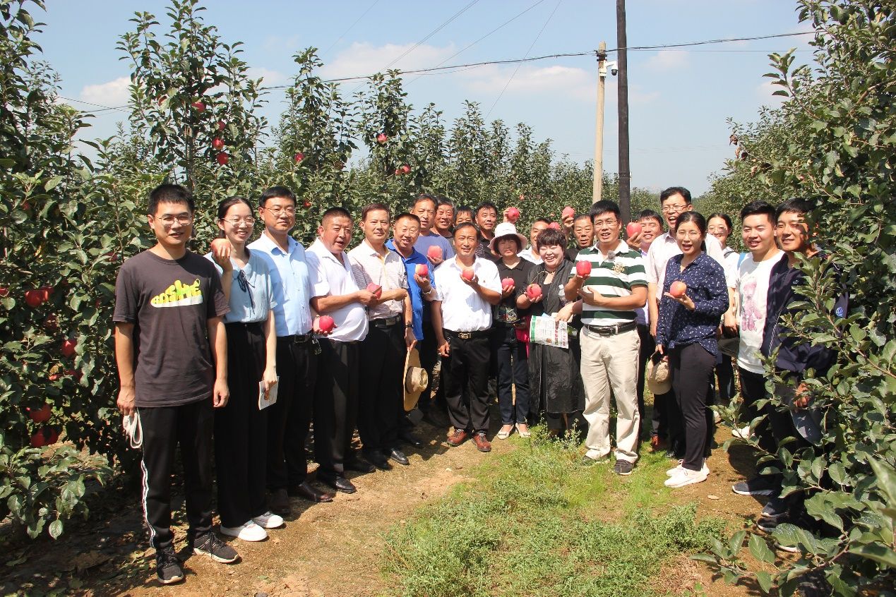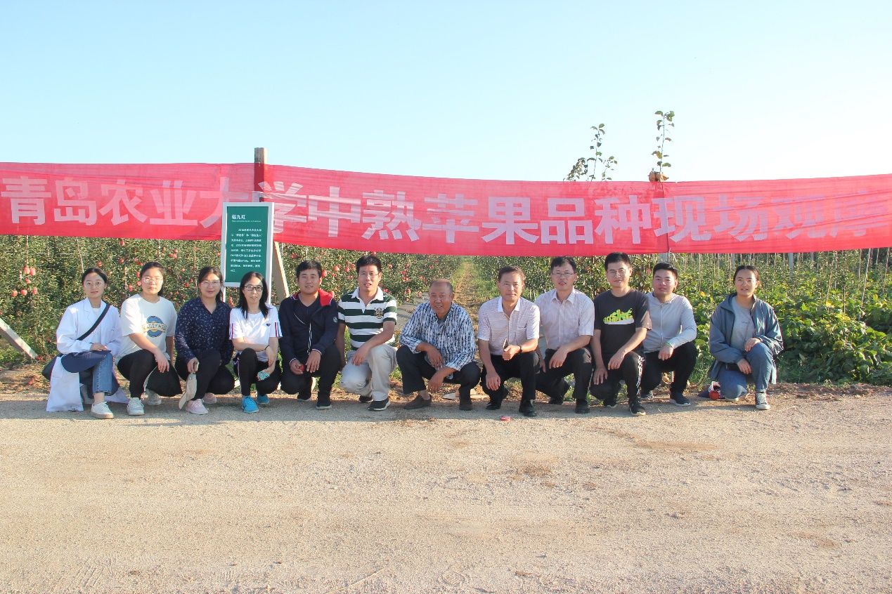 9月15日,九游体育官方网站在学校苹果育种基地莱州大自然园艺科技有限公司和龙口市果树研究所组织召开了中熟苹果品种‘福九红’现场观摩会。莱州市农业农村局杨鲁光站长,平度市李园街道7个片区的党支部书记及苹果种植大户和合作社技术人员、九游体育官方网站乡村振兴研究院张正明主任、九游体育官方网站师生及苹果育种团队人员和莱州、龙口当地果树技术人员共30余人参加了本次观摩会。