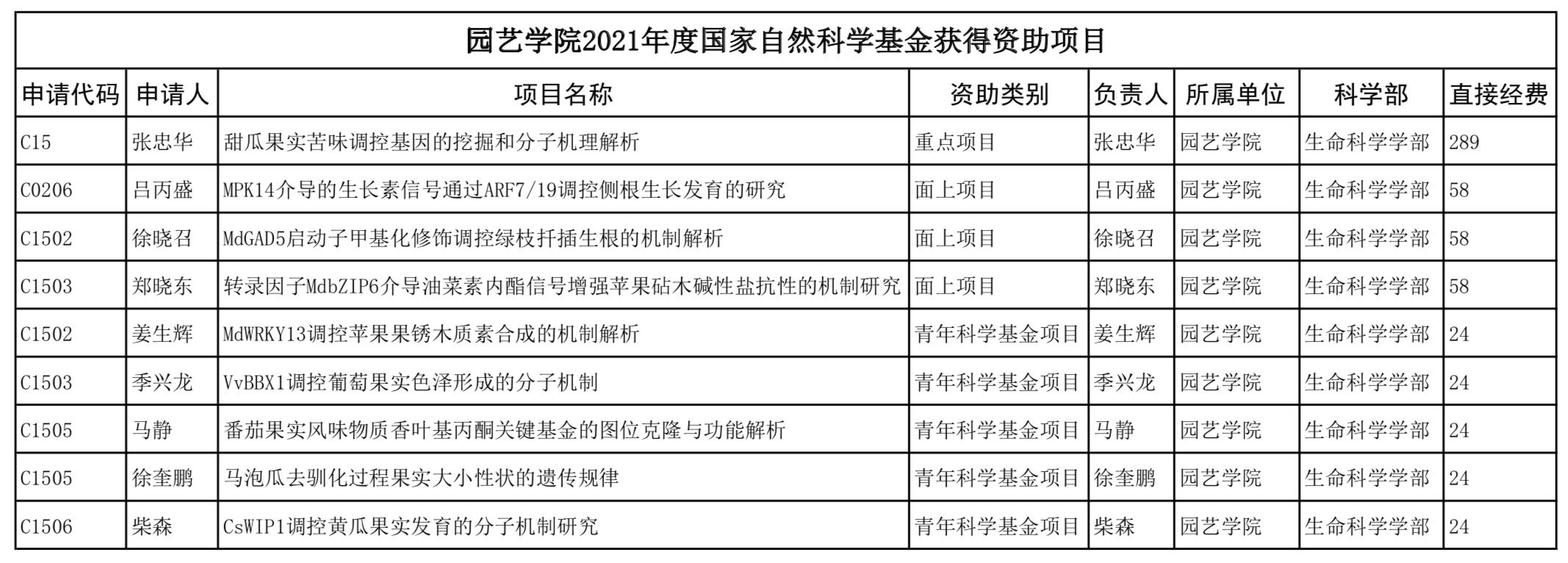 重点项目立项取得新突破。学院张忠华教授申报的"甜瓜果实苦味调控基因的挖掘和分子机理解析"获得国家自然科学基金重点项目的资助,这是学校首次获批国家自然科学基金重点项目,本年度全国园艺学科仅立项3项,这也是山东省园艺学科唯一立项,标志着学院承担国家级高水平科研项目的能力进一步提高,将有力推动学校向更高的发展建设目标迈进。