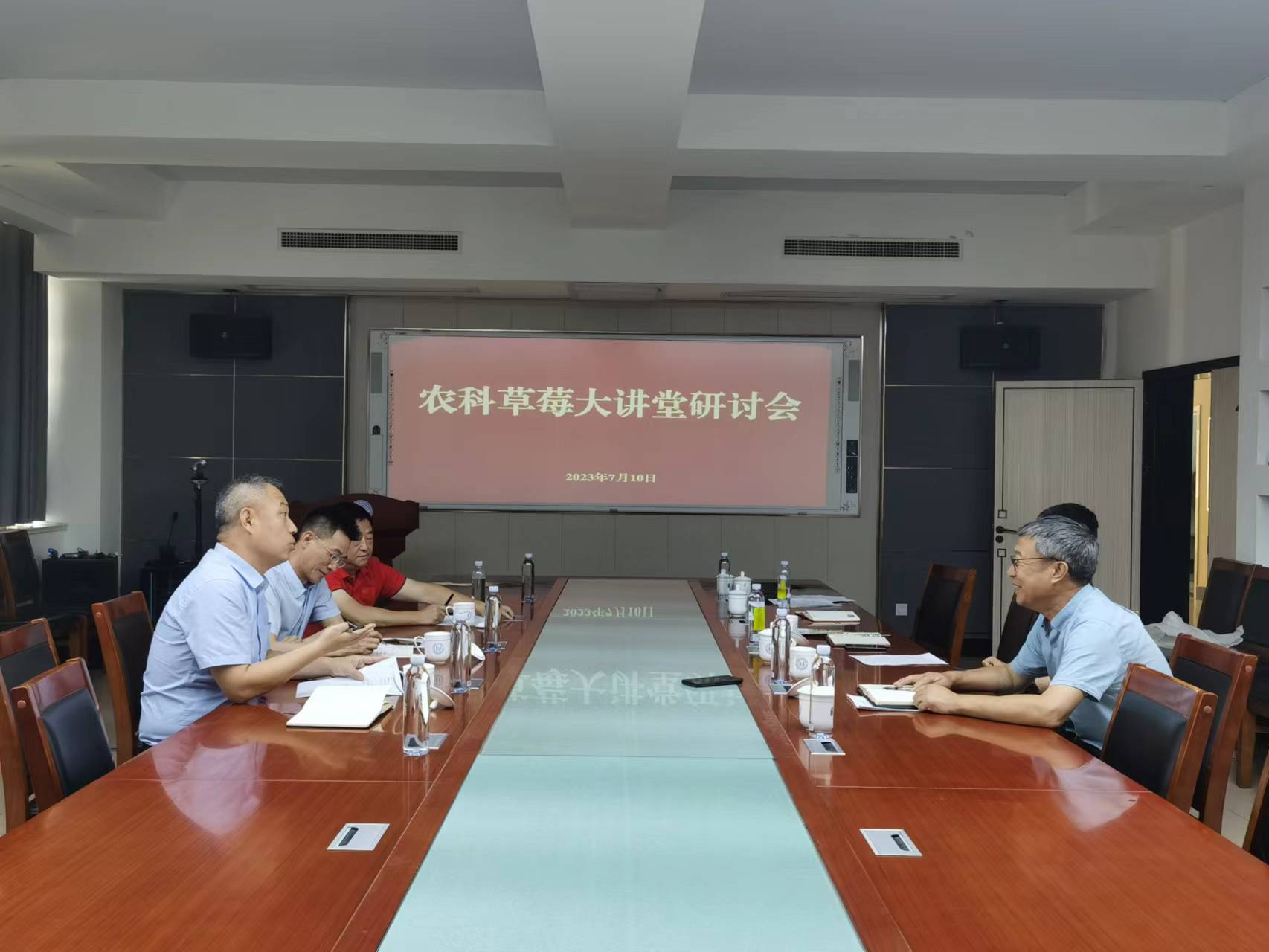 7月10日上午,九游体育官方网站在生物楼N306会议室召开“农科草莓大讲堂”战略合作研讨会,山东广播电视台农科频道副总监房翔和三农推广部主任蒋庆祝,青岛佳垦农业服务有限公司总经理杨世超,九游体育官方网站院长张忠华及副书记、副院长孙海涛,副院长程斐参加了会议。