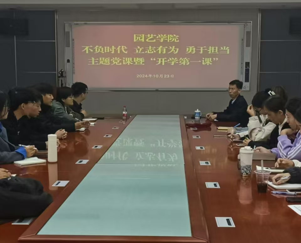 隋成竹以“不负时代 立志有为 勇于担当”为题,带领学生们回顾了党和国家的发展历程,深入剖析了当今时代的主要特征,展现了中国在世界发展进程中的大国担当,引导学生不断增强“四个意识”、坚定“四个自信”、做到“两个维护”。他提到,中国共产党团结带领全国各族人民走出了中国式现代化道路,走向实现第二个百年奋斗目标新征程,我们要结合当今世界百年未有之大变局的形势,自觉承担农业强国和乡村振兴的使命担当,强化专业素质,励志成长成才,为实现中华民族伟大复兴贡献力量。最后,隋成竹对与会党员和学生干部们提出了三点要求:一要坚定理想信念,提高政治站位,坚定不移听党话、跟党走,在困难面前不屈不挠,敢于拼搏,勇于吃苦;二要树牢专业化思想,不断学习新知识、新技能,拓宽视野,锻炼能力,将专业学习与国家、社会发展紧密结合,立志服务“三农”,推进农业农村现代化发展;三要充分发挥学生骨干的模范带头作用,以身作则,引领同学们共同进步,同时也要发扬大公无私的奉献精神,为同学们做好服务,营造良好学习氛围和校园文化。要带头遵守校规校纪和有关安全稳定要求,为学习成长营造良好环境。