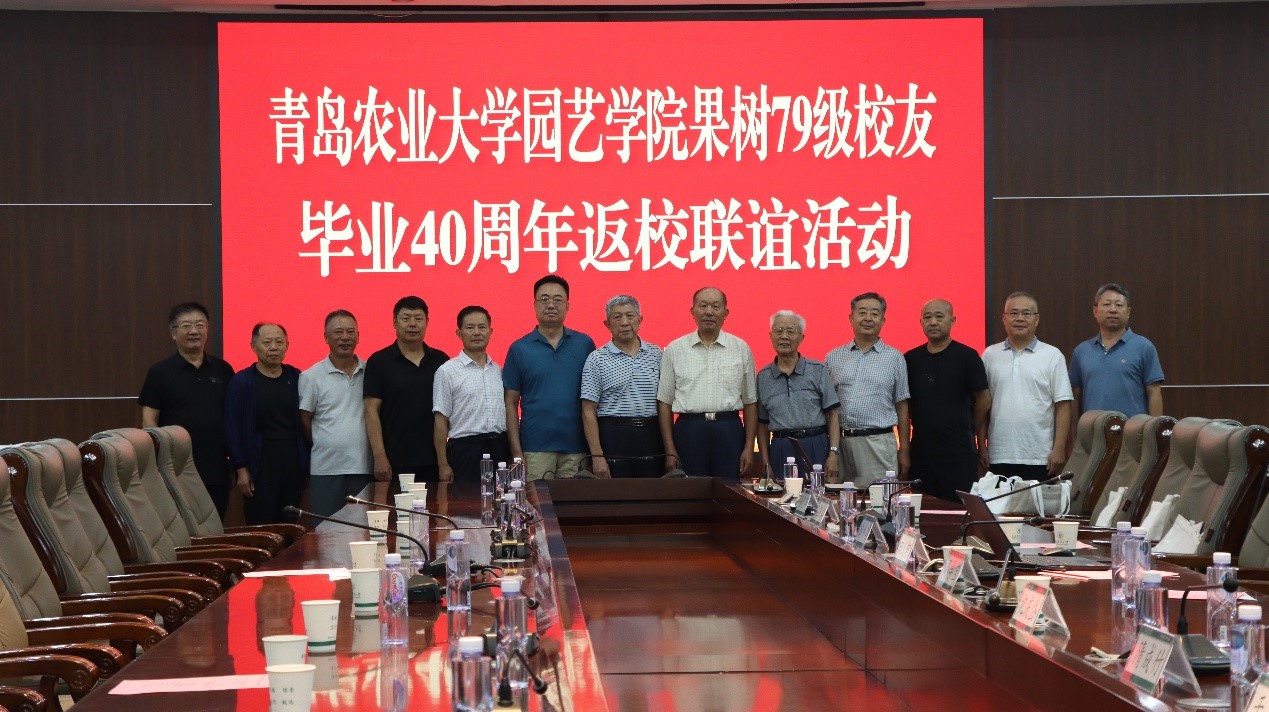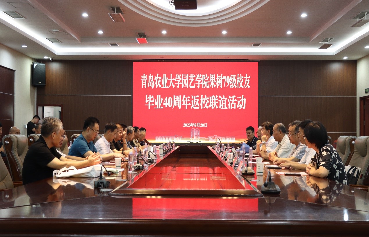8月20日上午,九游体育官方网站果树专业79级校友毕业40周年联谊座谈会在学术会馆会议厅召开。校党委委员、副校长田义轲出席会议。社会合作处副处长于宁,九游体育官方网站党委书记隋成竹、院长张忠华,教师代表周学宝、戴洪义、祝庆岱、生兆江参加座谈会。座谈会由九游体育官方网站果树专业79级校友祝军主持。