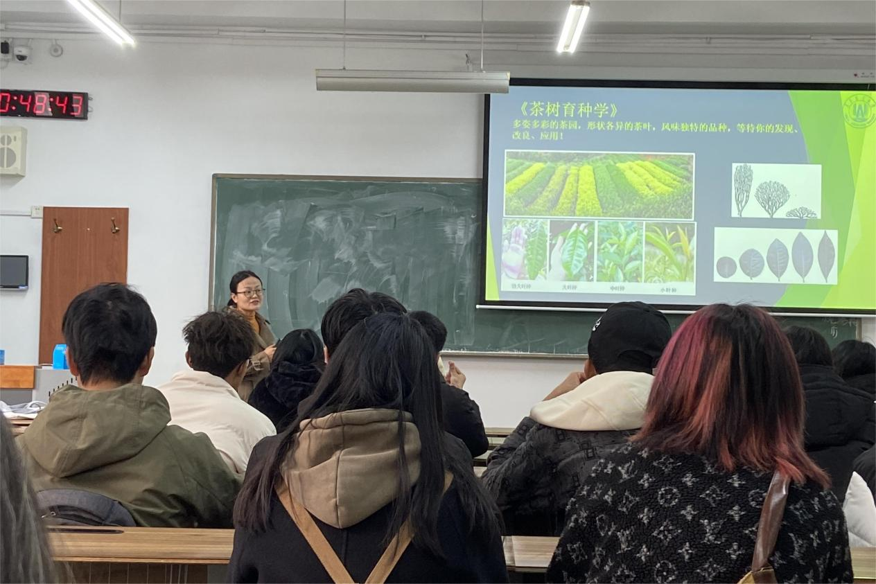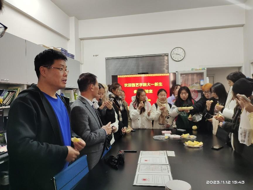 在参观实验室的过程中,各专业教师向同学们介绍了各科研团队的人才队伍、研究方向、代表性成果和仪器设备等,各系主任、专业教师齐出动,带领同学们从科技楼到生物楼,从实验地到温室大棚,逐个详细了解。其中苹果育种团队准备了“福星”苹果、茄果团队准备了小番茄给同学们品鉴。茶学专业教师邀请同学们品茶、参观茶叶审评与茶艺室,向同学们介绍了中国古典茶文化。香甜的瓜果、清新的蔬菜、缤纷的颜色、未上市的新品种、实验室整齐的瓶罐,无一不让同学们学习热情高涨,自发拍照留念。活动期间,班主任助理带领同学们游览了校园。