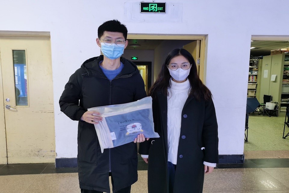 九游体育官方网站学生组织代表为考研学子送上爱心毛毯,在寒冷的冬季给他们带来来自学院以及老师们的温暖与鼓舞。学生组织代表们首先联系在教学区备考的18级优秀学生代表,送上爱心毛毯,为他们进行加油打气。晚上十点学生组织代表们来到考研学子宿舍区,敲开门、送温暖,给他们送上爱心毛毯,用简单的祝福语缓解他们一天的疲惫,提醒他们在忙着备考之余,不要忘记保暖,切实做好疫情防控,以最佳状态迎接考试。