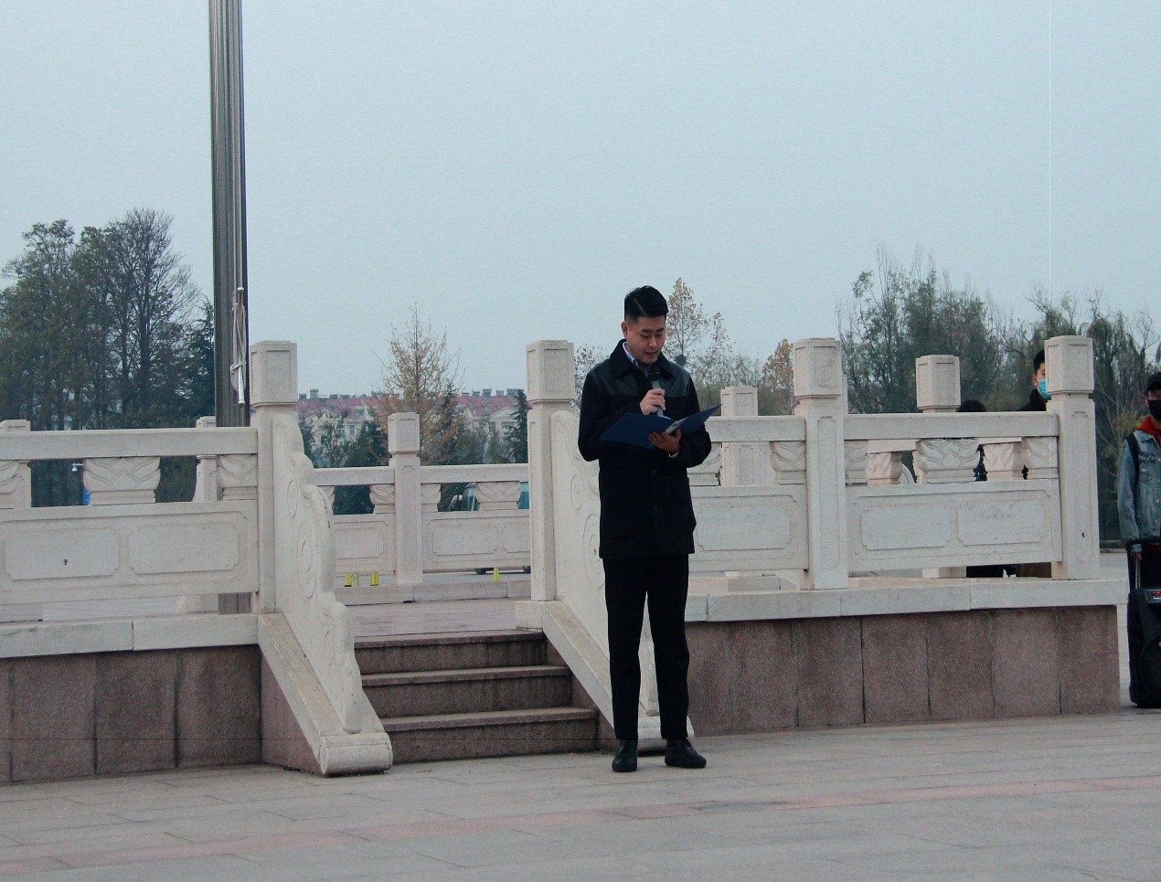 为深入贯彻学习习近平总书记在庆祝中国共产党成立一百周年大会上的重要讲话精神,增强当代大学生的使命感和责任感 ,11月15日,九游体育官方网站在虹子广场举行以“请党放心,强国有我”的主题升旗活动。九游体育官方网站19、20级全体学生参加本次活动,活动由九游体育官方网站辅导员赵健主持。