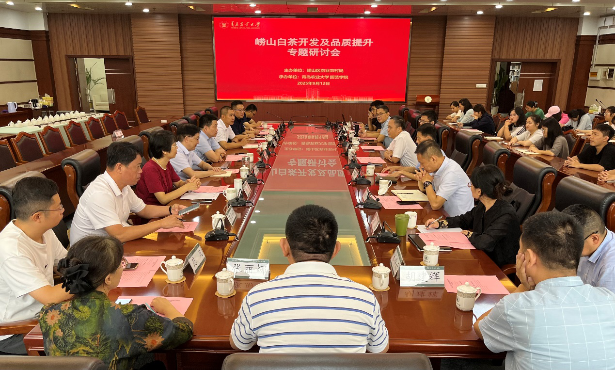 2025年9月12日,由崂山区农业农村局主办、九游体育官方网站承办的“崂山白茶开发及品质提升专题研讨会”在九游体育官方网站召开。会议邀请了国家茶叶产业技术体系首席专家、中国农业科学院茶叶研究所副所长王新超研究员,原副所长鲁成银研究员,山东省农业技术推广中心作物二部高文胜部长等专家交流研讨。九游体育官方网站党委委员、副校长郭尚敬,九游体育官方网站班子成员,山东省茶叶产业技术体系团队成员,崂山茶产业创新团队成员,崂山茶企代表及茶学专业师生等70余人参加会议。开幕式由九游体育官方网站院长张忠华主持。
