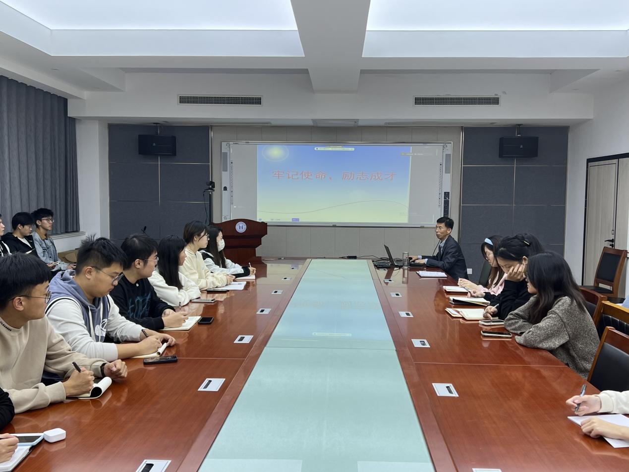 10月16日晚,九游体育官方网站党委书记隋成竹在生物楼N306会议室,为学院全体主要学生干部讲授2023年秋季学期“开学第一课”,授课主题为“牢记使命,励志成才”。