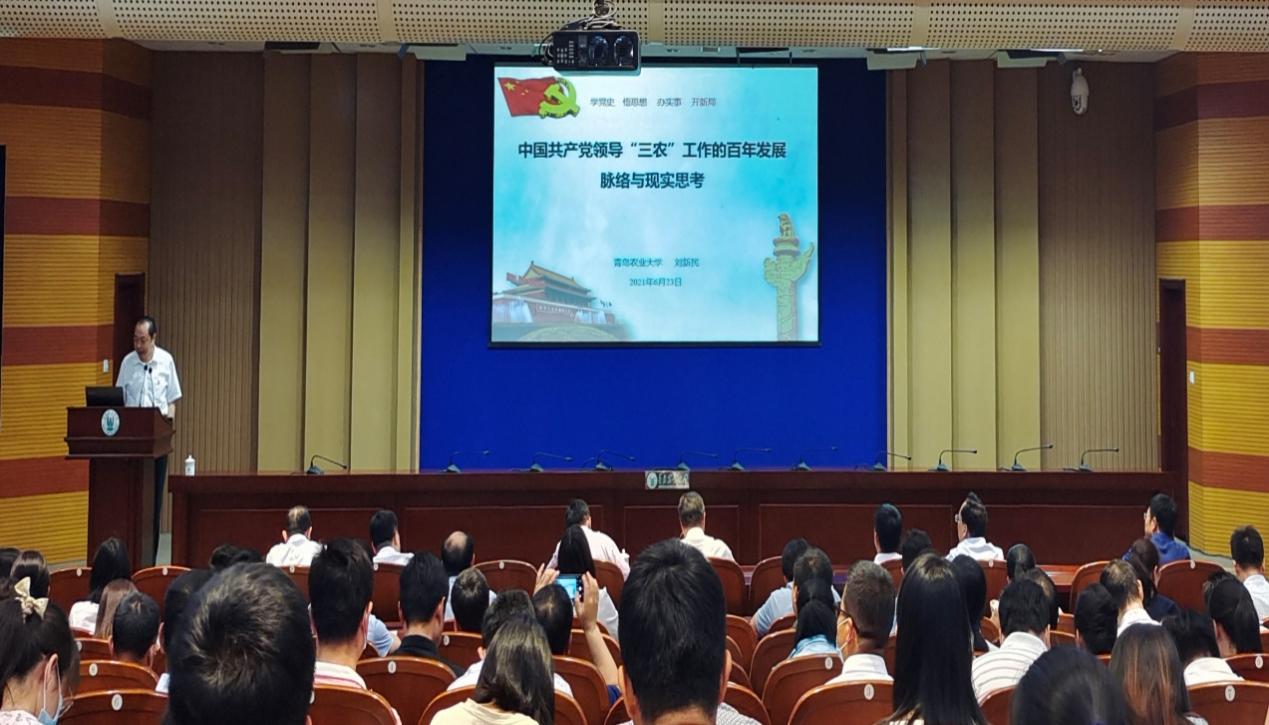 为扎实推进党史学习教育,促进广大教工党员通过党史学习教育做到明理、增信、崇德、力行,6月23日,九游体育官方网站党委副书记、校长刘新民为发展规划处、科技处、审计处、财务处、研究生处及九游体育官方网站、农学院全体教职工党员讲授《中国共产党领导“三农”工作的百年发展脉络与现实思考》主题党课。省委党史学习教育第二巡回指导组副组长唐勇、成员秦冠宇列席,主题党课由九游体育官方网站党委书记隋成竹主持。