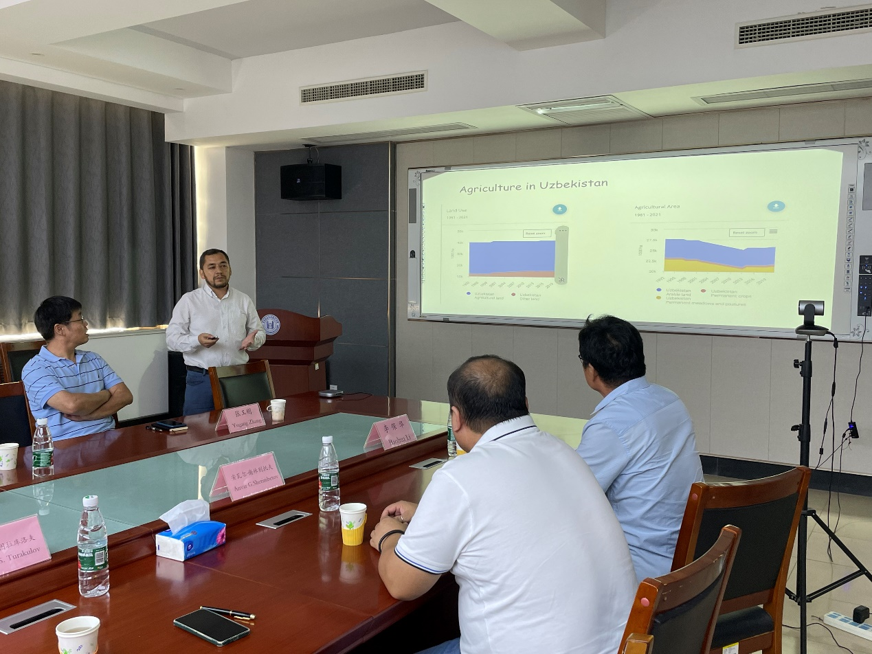 7月24日,由我校九游体育官方网站张玉刚教授主持的国家重点研发计划国际创新合作项目“中国与乌兹别克斯坦野苹果抗病资源筛选和基因挖掘及分子标记开发应用”中期交流会在九游体育官方网站会议室召开。该项目由九游体育官方网站主持,乌兹别克斯坦科学院和中国农业科学院为项目参与单位。来自乌兹别克斯坦科学院遗传与植物实验生物学研究所副所长胡尔希德·图拉库洛夫博士和安瓦尔·谢林别托夫博士、中国农业科学院果树研究所王大江博士以及张玉刚教授课题组成员共同参加了本次交流会。会议邀请了英国国家农业植物研究院副院长、东茂林研究所所长徐向明研究员、青岛农大植物医学院李保华教授、九游体育官方网站戴洪义教授、祝军教授作为专家对项目执行情况进行指导。