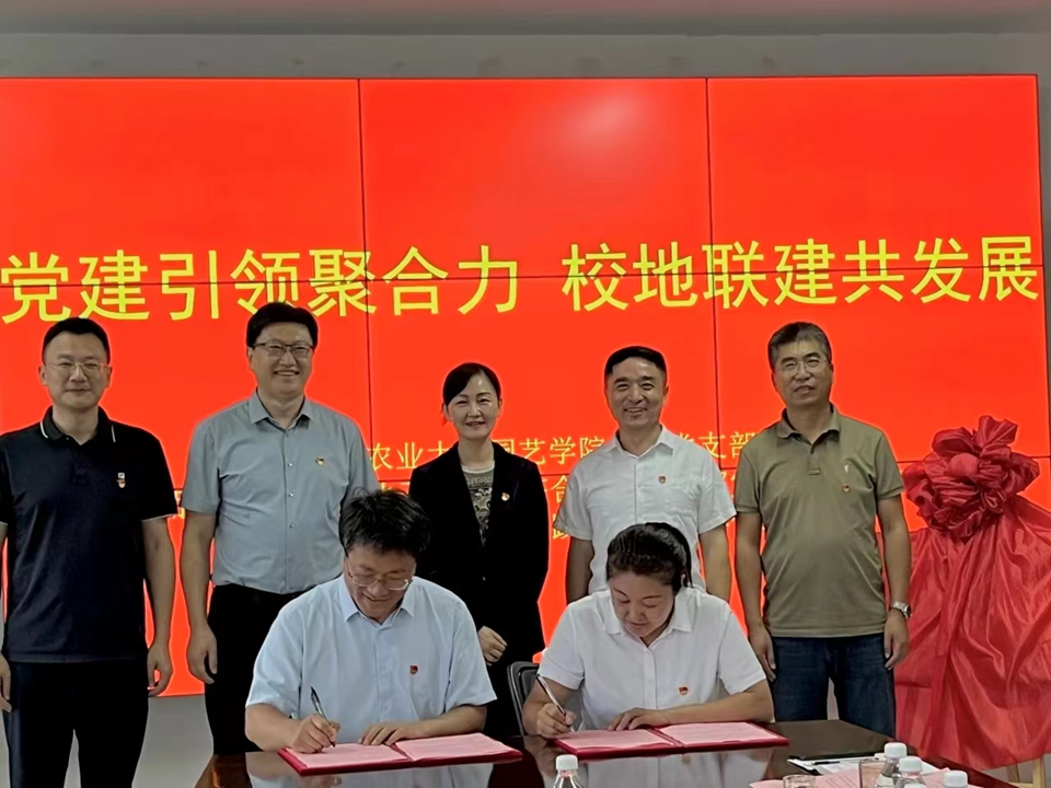 九游体育官方网站第一党支部书记李鼎立与李家洼子经合社党支部书记郭胜燕签订《党支部对接共建协议书》。同时,为充分发挥高校的人才优势和街道的资源优势,推动科研成果转化,九游体育官方网站在李家洼子经合社设立“大学生社会实践基地”,孙海涛和刘明静共同揭牌。
